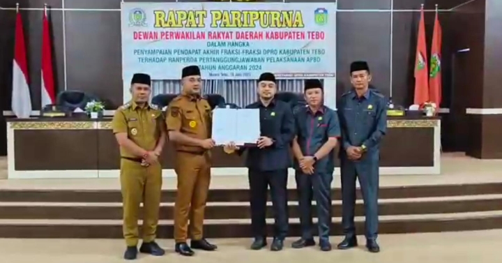 Sementara itu wakil ketua I DPRD Tebo Ihsanudin membacakan pandangan akhir 8 fraksi DPRD Tebo yang menerima pertanggungjawaban pelaksanaan APBD tahun 2024.