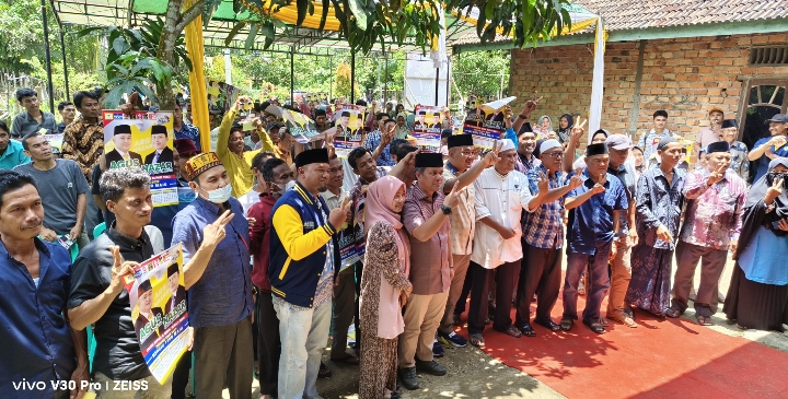 TEBO – Terus bergerak, pasangan muda Calon Bupati dan Wakil Bupati Nomor Urut 2, Agus Rubiyanto dan Nazar Efendi kukuhkan ratusan Tim di Kecamatan Tebo Ilir, Jumat (27/09/2024)