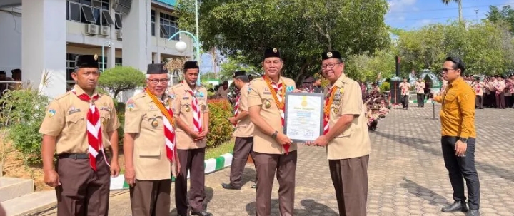 BATANGHARI – Bupati Batanghari, Muhammad Fadhil memimpin upacara peringatan Hari Pramuka ke-63 di Lapangan Kantor Bupati Batanghari, Jumat (13/9).