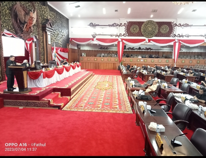 JAMBI – DPRD Jambi melaksanakan rapat paripurna penyampaian Nota Pengantar Ranperda tentang Pertanggungjawaban RAPBD Provinsi Jambi Tahun Anggaran 2022, (4/7/2023).