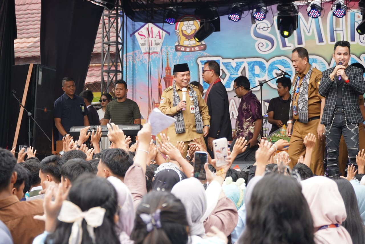 JAMBI – Gubernur Jambi Dr. H. Al Haris, S.Sos. MH dorong siswa-siswi SMA Negeri 11 Kota Jambi untuk meningkatkan kreativitas, inovasi serta ide-ide dalam dunia pendidikan demi terwujudnya Sumber Daya Manusia (SDM) unggul dan mempersiapkan masa depan anak bangsa yang lebih baik. Dorongan tersebut disampaikan Gubernur saat menghadiri Peringatan Hari Ulang Tahun (HUT) Ke-27 dan Pentas Seni (PENSI) SMA Negeri 11 Kota Jambi, bertempat di halaman depan SMA Negeri 11 Kota Jambi, Senin (30/01/2024) siang.