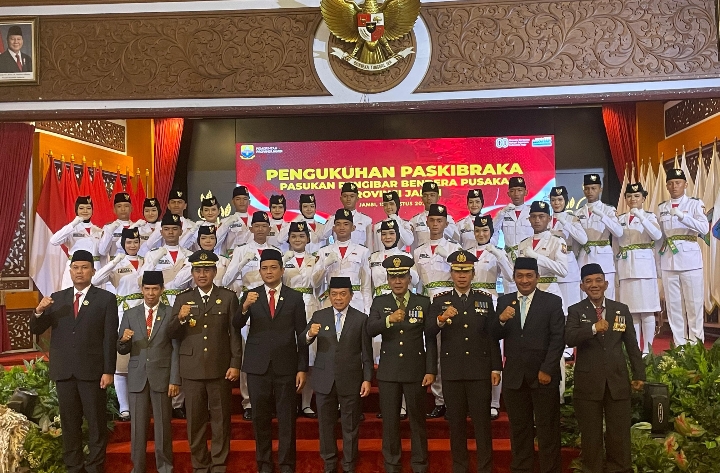 JAMBI – Gubernur Jambi Dr.H. Al Haris,S.Sos,MH mengukuhkan 54 Pasukan Pengibaran Bendera Pusaka (Paskibraka) Provinsi Jambi Tahun 2025. Mereka akan menjalankan tugas pengibaran dan penurunan bendera merah putih pada 17 Agustus mendatang.