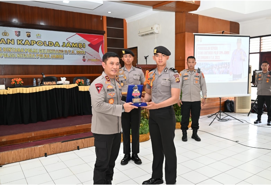 JAMBI – Kapolda Jambi Irjen Pol Rusdi Hartono berikan pembekalan kepada Siswa Diktukba Polri Gelombang II Tahun Ajaran 2023 SPN Polda Jambi, pada Senin (18/12).