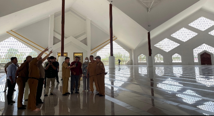 Mereka meninjau bangunan Islamic Center untuk memastikan pekerjaan berjalan sesuai rencana dan standar kualitas.