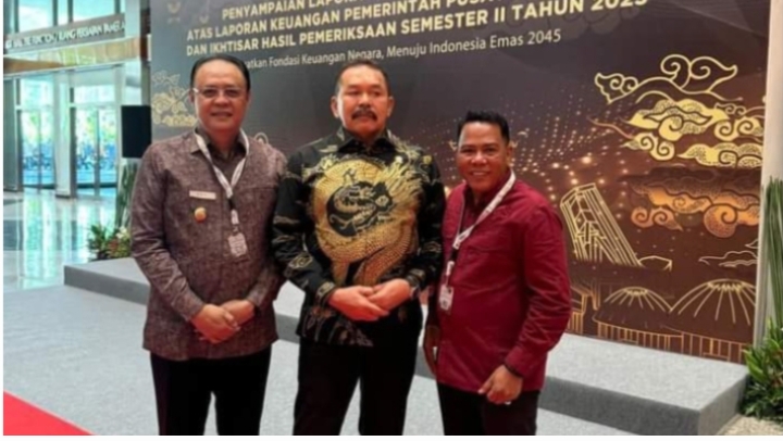 TEBO – Ketua DPRD Kabupaten Tebo Mazlan mendampingi Pj Bupati Varial Adhi Putra dalam acara penyampaian Laporan Hasil Pemeriksaan (LHP) atas Laporan Keuangan Pemerintah Pusat (LKPP) Tahun 2023 dan Ikhtisar Hasil Pemeriksaan Semester II Tahun 2023 di Cendrawasih Room, Jakarta Convension Center (JCC), Senin (08/07/2024).