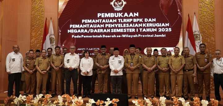 TEBO – Pemerintah Kabupaten Tebo melalui Penjabat Sekretaris Daerah, Dr. Sindi, S.H. M.H., menghadiri kegiatan Pembukaan Pemantauan Tindak Lanjut Rekomendasi Hasil Pemeriksaan BPK dan Pemantauan Penyelesaian Kerugian Negara/Daerah Semester I Tahun 2025. Kegiatan ini diselenggarakan oleh BPK Perwakilan Provinsi Jambi dan bertempat di Auditorium Sultan Thaha, BPK Perwakilan Provinsi Jambi.