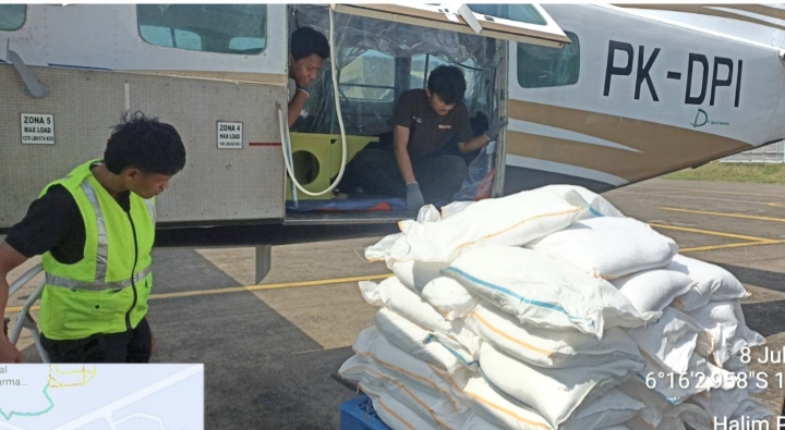 Menurut dia, telah dilaksanakan satu sorti penerbangan pesawat Cessna 208 Caravan PK-DPI dengan membawa bahan semai sebanyak 800 kg Natrium Klorida (NaCl). Penyemaian dilakukan di atas langit pesisir Banten dan Lebak, pada Pada Senin (7/7/2025).