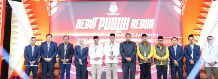 TEBO – Sekda Tebo Teguh Arhadi bersama kepala OPD dan unsur Forkompinda beserta undangan lainnya menghadiri debat publik kedua calon kepala daerah dan calon wakil kepala daerah kabupaten Tebo tahun 2024 di aula utama gedung DPRD kabupaten Tebo yang dilaksanakan oleh KPUD Tebo, Kamis 14 November 2024.(***)