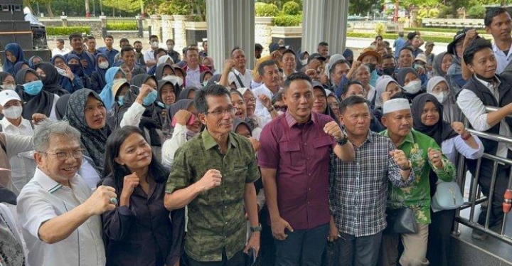 JAMBI – Ratusan tenaga honorer dari berbagai daerah di Provinsi Jambi menggelar aksi damai di depan Gedung DPRD Provinsi Jambi, Selasa (20/5/2025).
